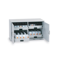 Les armoires de sécurité pour produits corrosifs basses sont divisées en 2 compartiments indépendants pour les acides et les bases (modèle 2 portes seulement).