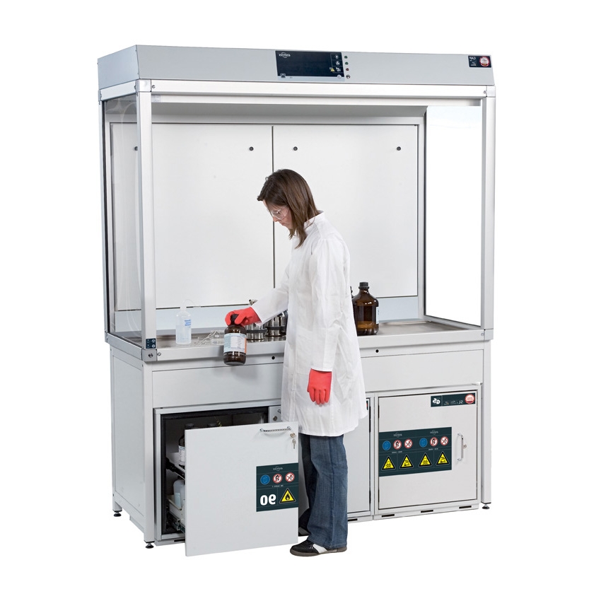 - Poste de travail à flux laminaires avec armoires de sécurité